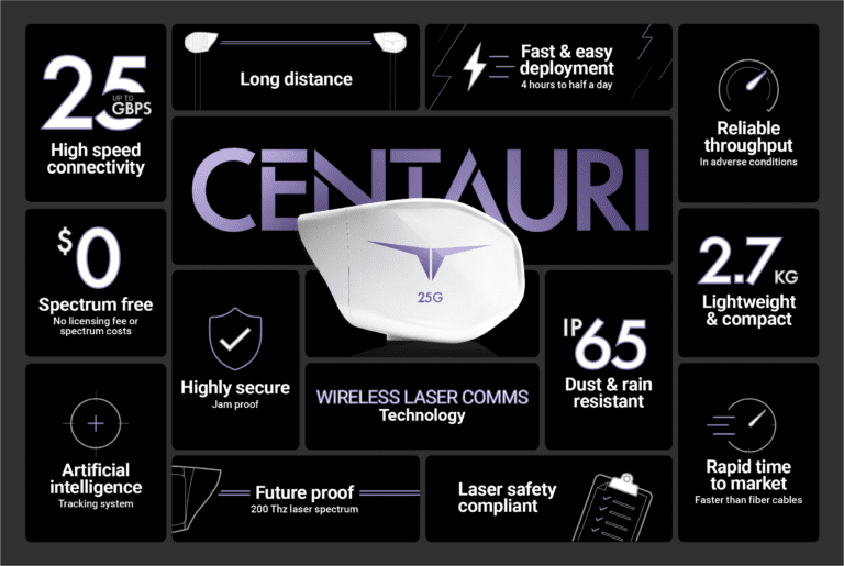 Achieved through lower cost per bit than CENTAURI 10G, zero spectrum costs and faster deployment relative to fiber infrastructure.